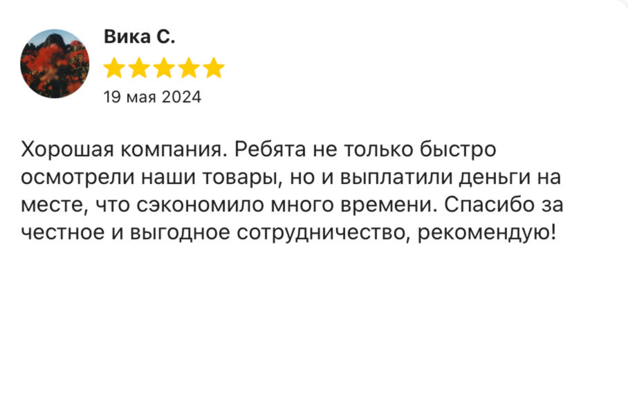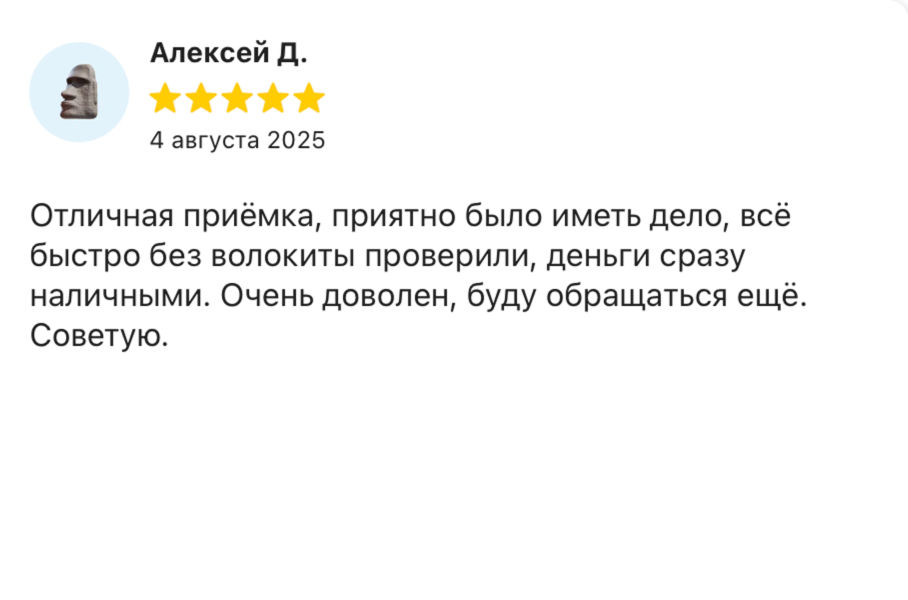 После оценки вы сразу получаете оплату любым удобным способом: наличными или переводом