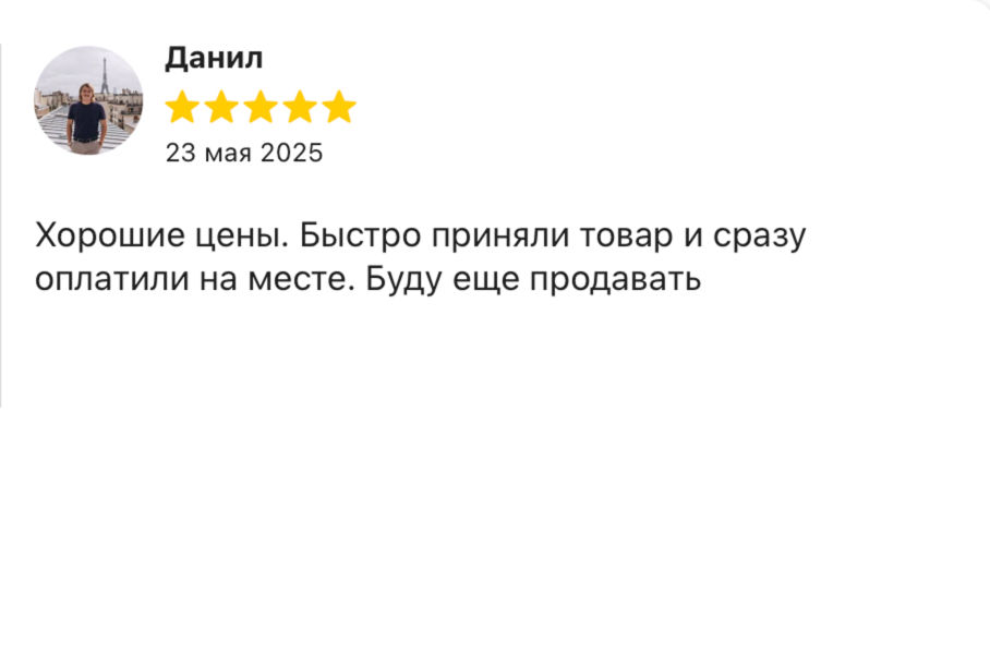 Наш специалист приедет в удобное для вас время, произведёт оценку и взвешивание, не беря за это никаких дополнительных оплат